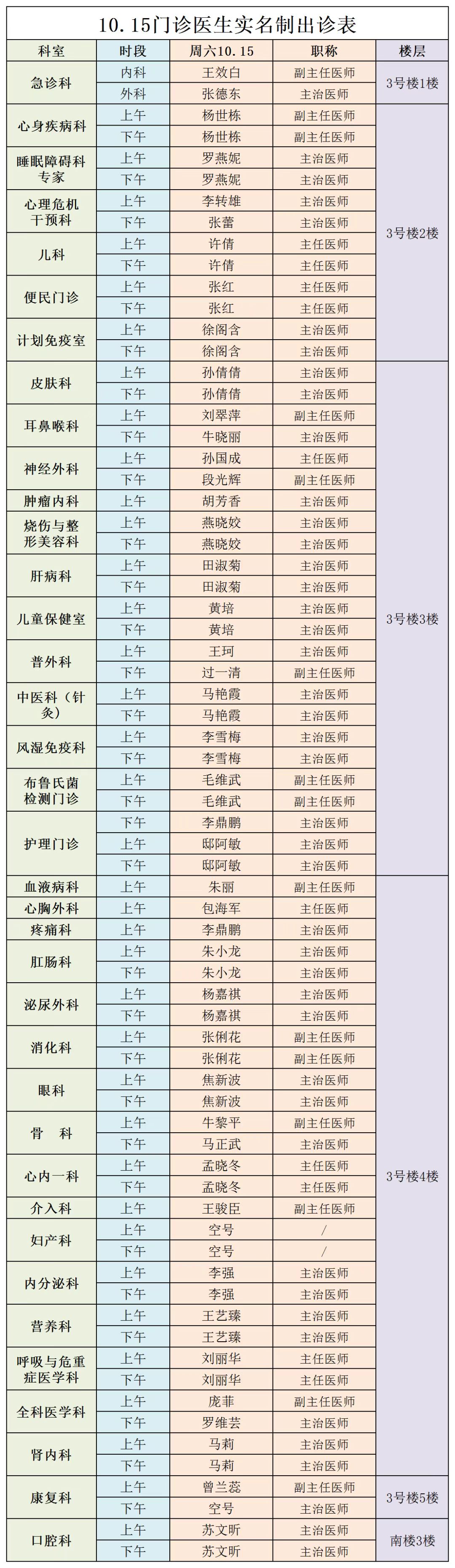 成人导航 、西北民族大学附属医院10月15日(星期六) 门诊出诊信息