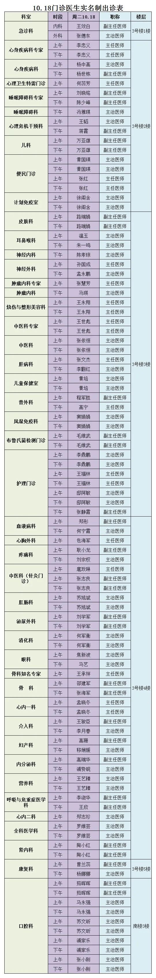 成人导航 、西北民族大学附属医院10月18日(星期二) 门诊出诊信息