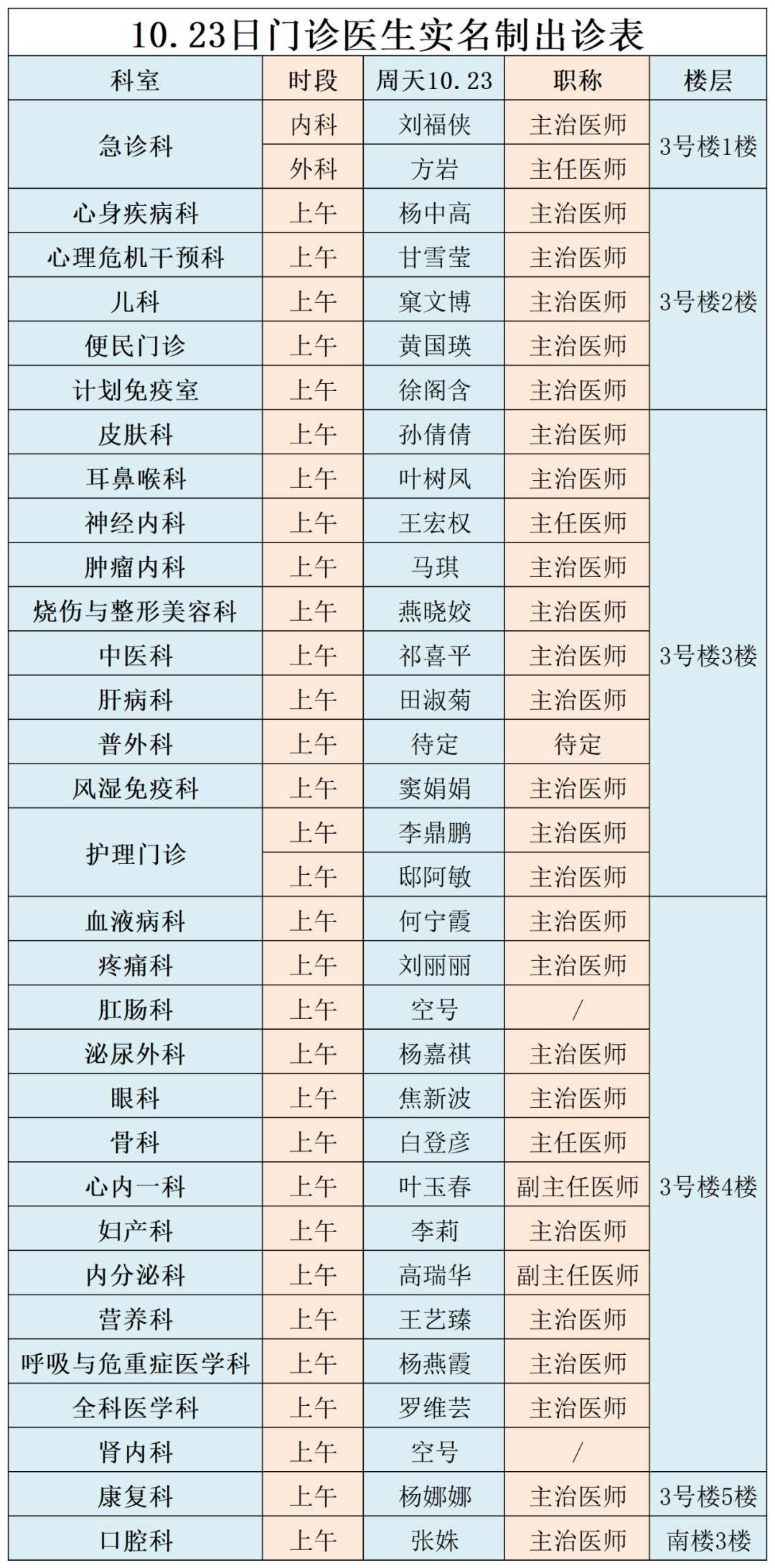成人导航 、西北民族大学附属医院10月23日(星期日) 门诊出诊信息