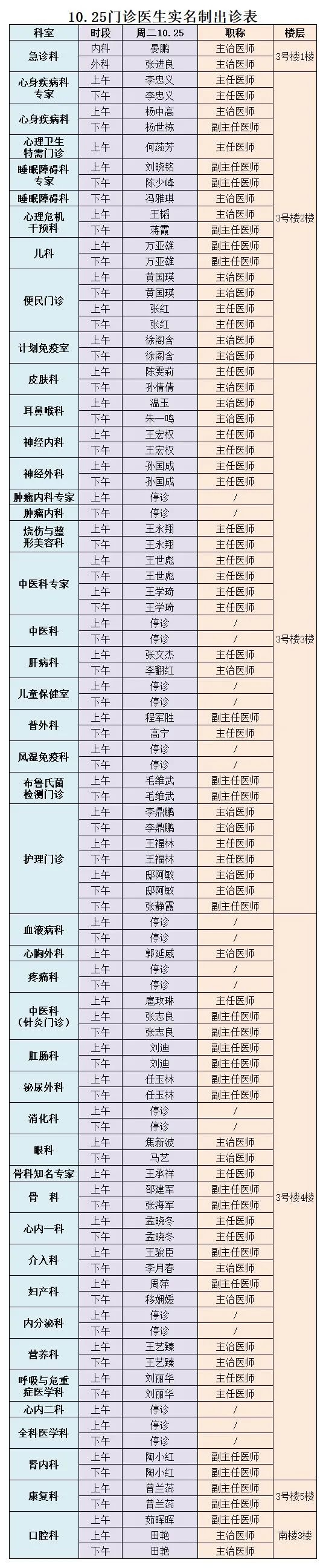 出诊信息一览表