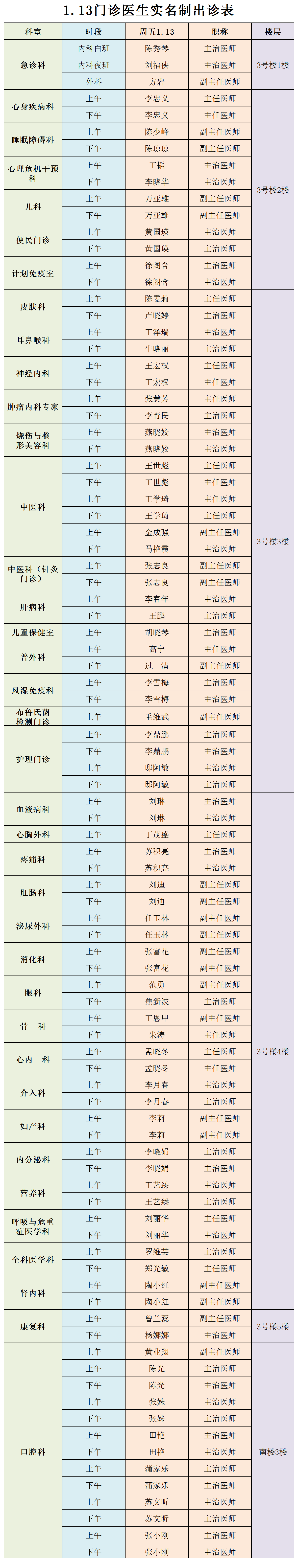 成人导航 、西北民族大学附属医院1月13日(星期五) 门诊出诊信息