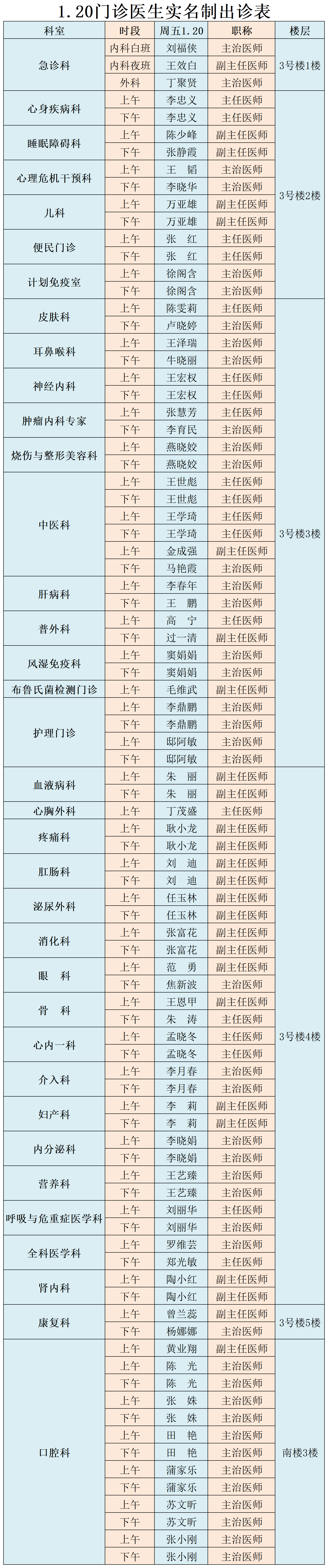 成人导航 、西北民族大学附属医院1月20日(星期五) 门诊出诊信息