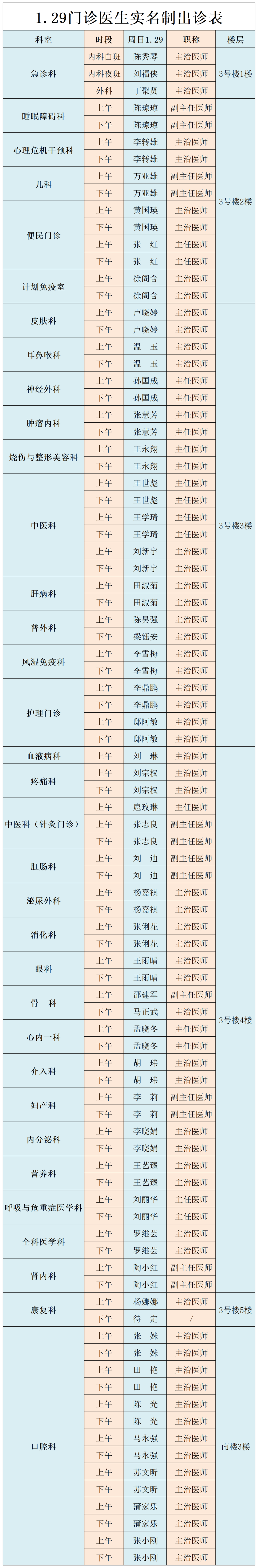 成人导航 、西北民族大学附属医院1月29日(星期天) 门诊出诊信息