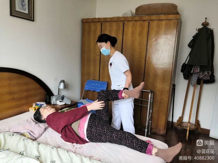 美小护在给患者换药后还教会患者一些康复锻炼的小技巧。