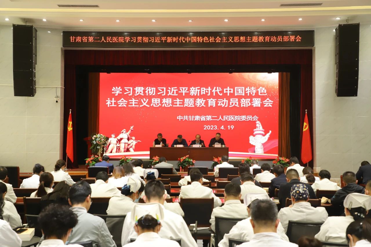 院党委书记尹卫国作动员讲话。他强调,在全党深入开展学习贯彻习近平新时代中国特色社会主义思想主题教育,是党中央为全面贯彻党的二十大精神、动员全党同志为完成党的中心任务而团结奋斗所作的重大部署,是深入推进新时代党的建设新的伟大工程的重大部署。习近平新时代中国特色社会主义思想是当代中国的马克思主义、二十一世纪的马克思主义,是中华文化和中国精神的时代精华,是党和人民实践经验和集体智慧的结晶。他要求,全院各级党组织,党员干部职工一要深刻认识开展主题教育的重大意义,提高政治站位,统一思想认识,切实把思想和行动统一到党中央决策部署和省委要求上来。二要深刻领会主题教育的丰富内涵,全面落实主题教育的总要求和根本任务,把理论学习、调查研究、促进发展、检视整改、建章立制贯穿始终、一体推进。三要始终坚持实践导向,扎实推进主题教育走深走实,确保学习教育组织到位、措施到位、落实到位。要结合正在开展的“三抓三促”行动,紧紧围绕医院重点工作,落实好中央和省委主题教育各项工作任务,凝心聚力、踔厉奋进,促进医院高质量发展;四要搞好统筹压实责任,切实把主题教育谋划好组织好落实好。全院各党支部要高度重视,精心组织实施,切实把学和做结合起来、把查和改贯通起来、把破和立统一起来,行动上要迅速跟进、措施上要务求实效,确保学习教育持续深入开展,取得实实在在的效果,为建设幸福美好新甘肃、开创富民兴陇新局面而不懈努力。