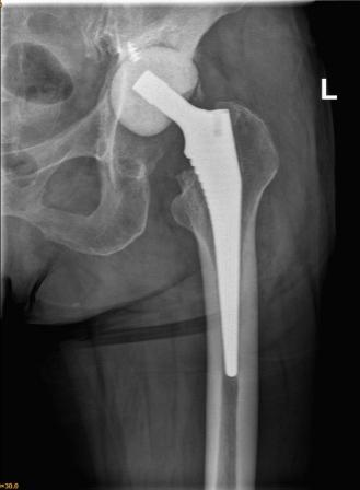 2023年1月,李大妈感左侧髋部疼痛明显,活动受限,复诊提示左侧髋关节髋臼松动翻转,假体上移。