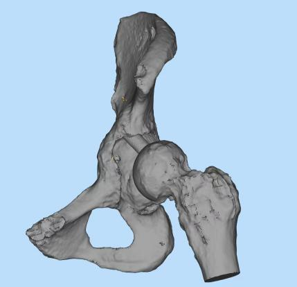 经过前期的治疗,现在左侧髋关节疼痛是影响李大妈生活质量的最大问题。通过对本次入院后髋关节CT的再次评估,张海军主任发现患者左侧髋臼骨缺损比3月前明显增多,普通假体无法完成手术,决定采用3D打印新技术评估髋臼缺损、模拟手术方案,经过3D打印模型和计算机测量评估,决定使用钽金属垫块和多孔钽杯重建髋臼。