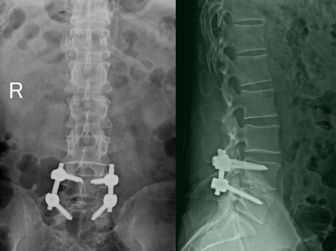 患者董某,51岁;有L4-5椎间盘摘除+椎间植骨融合内固定手术史。本次入院经影像学辅助检查,显示患者腰椎L2-3、L3-4椎间盘膨出,L5-S1椎间盘突出,左侧神经根受压迫。白登彦主任团队结合专科查体确定患者症状责任阶段,并综合评价患者年龄、手术适应症、手术史等多方面因素,为患者制定了L5-S1节段脊柱内镜辅助下突出椎间盘切除联合纤维环缝合手术治疗方案。术后患者恢复良好,对疗效满意。