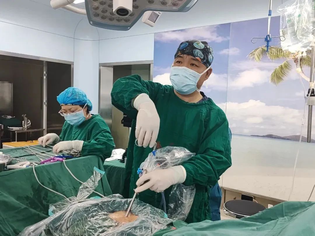 (白登彦主任为患者行脊柱内镜辅助下突出椎间盘切除联合纤维环缝合手术)
